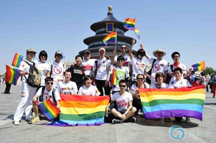 5月15日,“国际不再恐同日”的前两天,20名来自北京地区的各界人士穿着印有图案及标语的T恤,组成“彩虹车队”,骑自行车穿越众多京城著名景点,向公众宣传"国际不再恐同日"。这是北京地区志愿者第三次为“国际不再恐同日”举办主题活动。