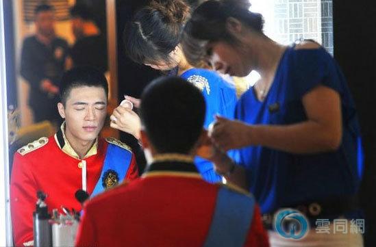 拍完一组婚纱照的强少到化妆台前补妆