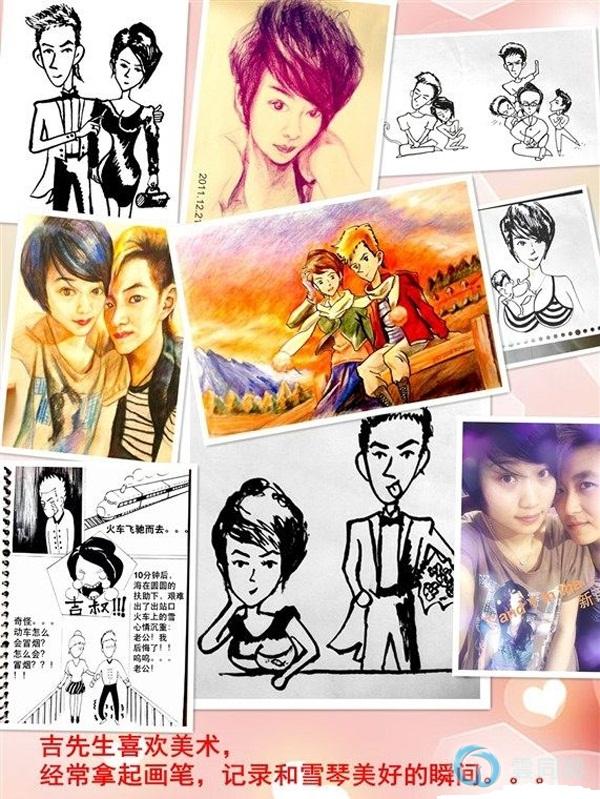 新郎吉先生平时的爱好就是画画,弹钢琴。吉先生描绘了很多她们婚后的生活。