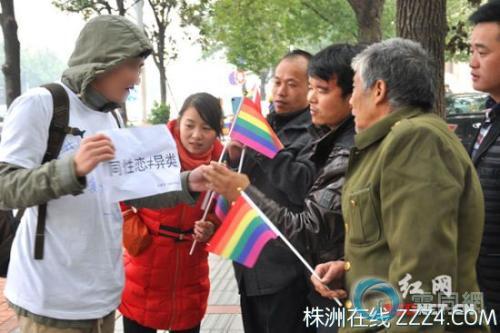 当时,向小寒和其他志愿者一起身着黄色、白色宣传T恤,手持宣传标语和象征同性恋者的彩虹旗帜,从南湖大市场出发,经五一大道向长沙火车站行进,沿途向路人发放象征同性恋反歧视的彩虹旗,并邀路人合影和签名支持。