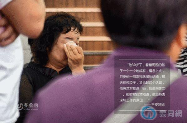 心语妈妈不敢告诉老伴儿他们的儿子是同性恋。一段时间里,作为母亲,她独自承受这份痛苦。她曾经问自己:“为什么生了这样一个孩子,是不是自己做错了什么,上天在惩罚我。”孩子的父亲知道儿子是同性恋后说:“让儿子去死,我也不会去接受的。”说完做父亲的也哭了。