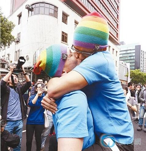 台湾伴侣权益推动联盟等团体今年3月份在台当局“立法院”旁举办全民“街”吻活动。