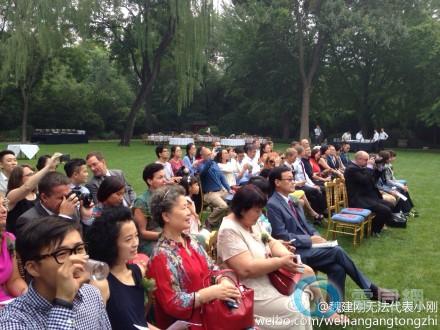 英国驻华大使府邸内举行婚礼的草坪,两人邀请了数十名亲友见证婚礼
