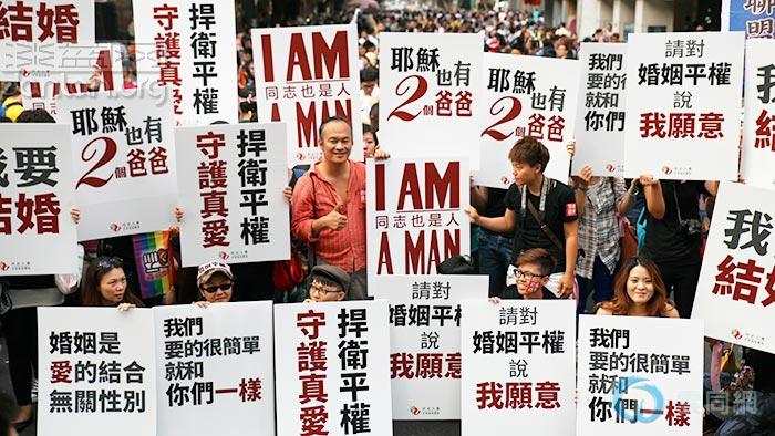 中国时报5日报道,“彩虹围城”参加者将112只象征同性恋恐惧症的大锁挂在“立法院”围栏上,要求“立委”支持婚姻平权,用“平权钥”解开“恐同锁”,现已确定21席“立委”通过书面声明支持婚姻平权。