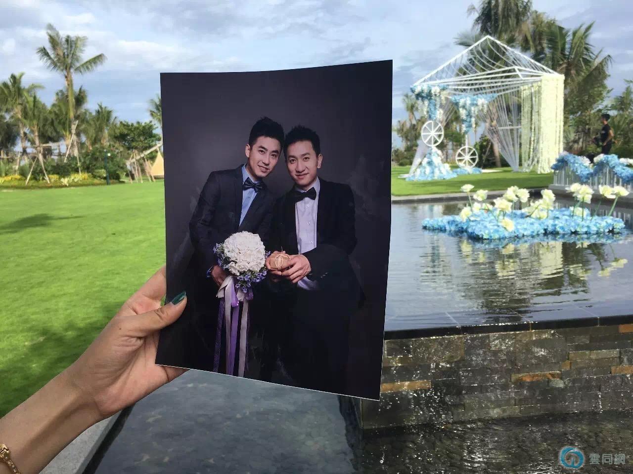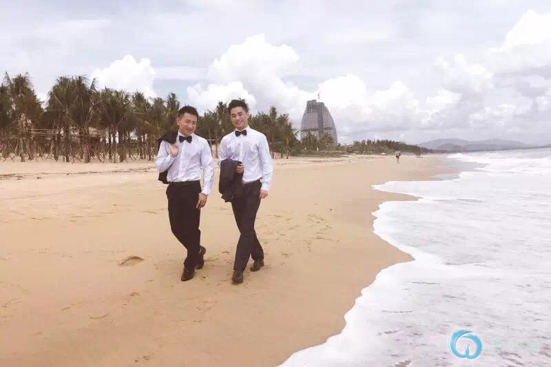 这是“100场同志婚礼”的第2场,刘星和志东的婚礼今天下午在三亚举行。这对夫夫都是Blued用户,他们将自己的欢乐通过直播分享给所有朋友。