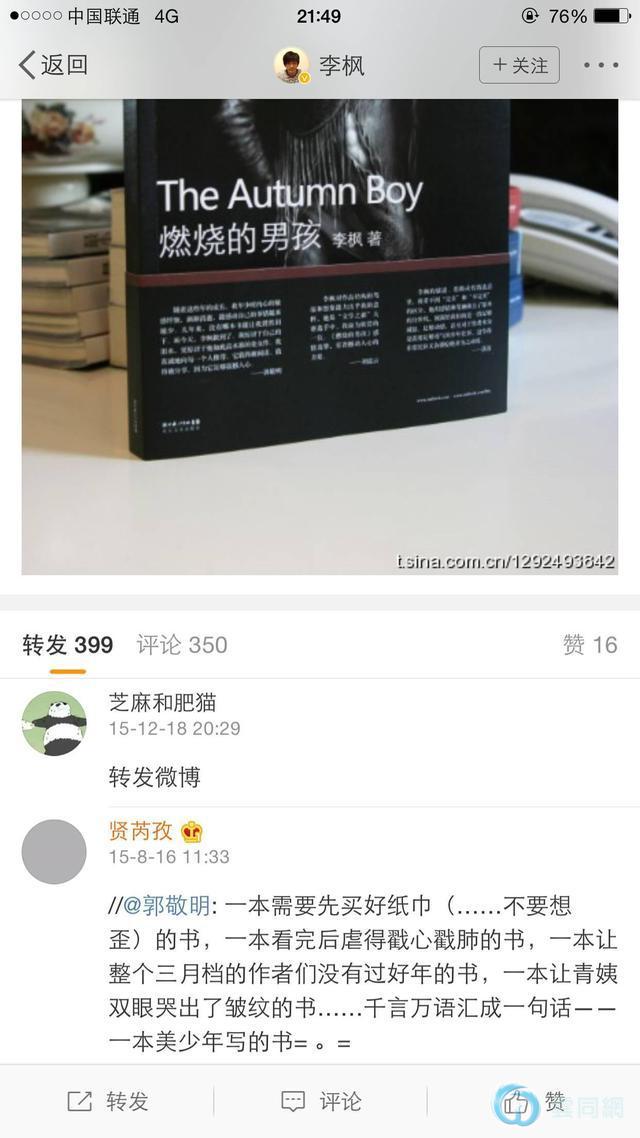但这之后,两人就不再有共同出现的媒体时刻,从销量上看,《燃烧的男孩》出版后,席卷了各大书店的排行榜,累计销量已达30余万册,并于2013年5月推出了新版,这也是李枫最畅销的作品。