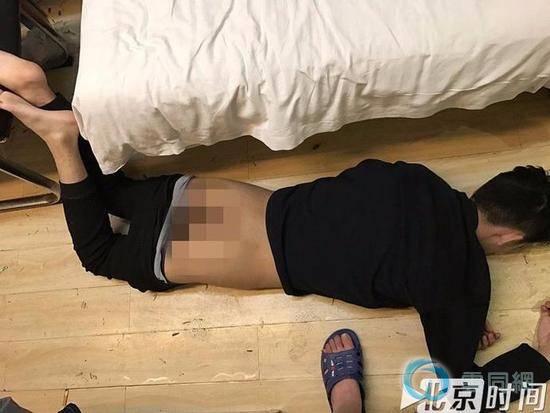 照片中一名男子裤子已被脱掉一半