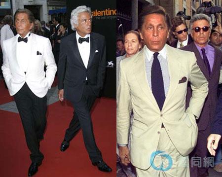 左图:Valentino和Giancarlo Giammetti一身黑白情侣装参加自己品牌在罗马的世纪服装展览。 右图:两人相携参加威尼斯电影展,