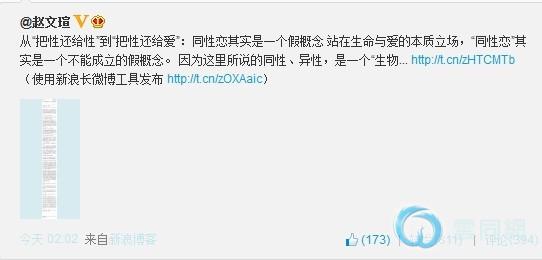 6月10日,赵文瑄在个人微博中发文力挺“同性恋”,不少网友认为赵文瑄此举疑似出柜,并纷纷留言支持,并赞其文章写的很有才华。