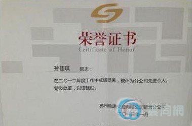孙佳琪自曝曾获荣誉证书