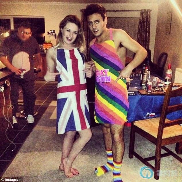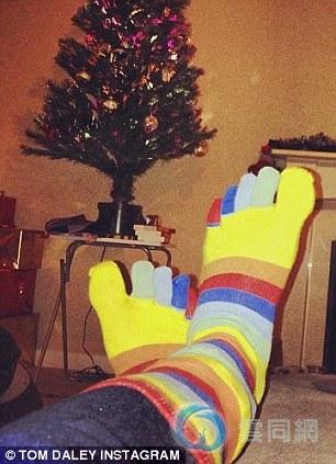 英国跳水神童托马斯-戴利近日在自己的Instagram上发布了一组庆祝圣诞的照片,图中戴利全身仅卓彩虹围裙和圣诞袜,围裙上更是印上了“gay icon”(同志偶像)的字样,而他的男朋友达斯汀-朗斯-布莱克也在网上上传了彩虹袜子回应。