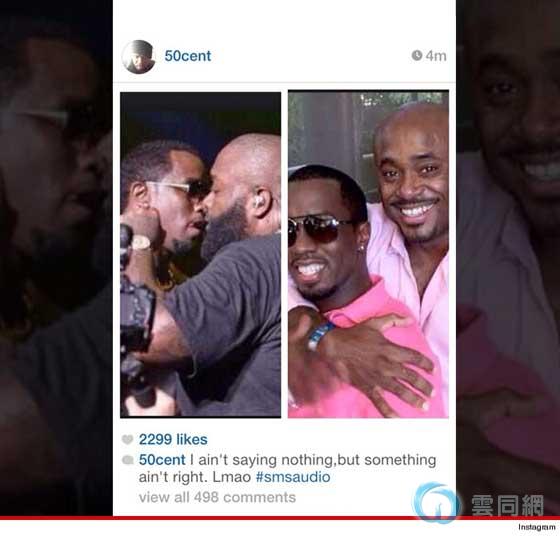 50美分在社交网站Instagram上传了两张照片,第一张是穿着粉红衬衣的斯图特跟同样是粉红衬衣的吃牛老爹在拥抱;另一张照片从拍摄的角度看过去吹牛老爹正在和Rick Ross在接吻。在图片下面50美分说出了这样的评论“我不做任何评价,但是好像有什么不对吧”。不过,在照片发布之后很短的时间内50美分就把照片撤了下来。其实,众所周知,50美分和吹牛老爹以及Rick Ross的矛盾由来已久,加之最近他唱片公司前经理斯图特在录制一部关于嘻哈文化的纪录片中称50美分为过气歌手,所以50美分的仇恨也发泄到了斯图特身上。 至于为什么把照片从网上撤下来,也许50美分经过再三思考还是不愿意跟几位大佬发生大规模的争斗。