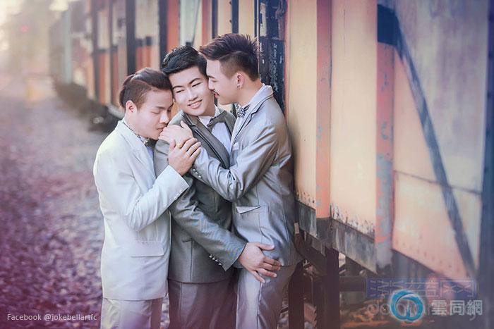 泰国三名男子一起结婚组成多边家庭,在网络上引起轰动。