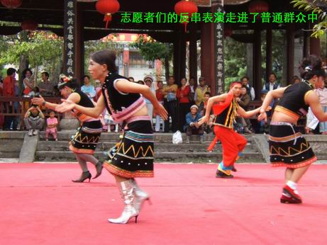 春雨同心工作组的“角”们的出现,又一次的使晚会达到高潮。大家开心着,快乐着,沉醉着,张望着,寻觅着……“大理好朋友健康会所”的志愿者们乘机将“套套”,“润滑剂”《七彩天空》,《朋友》等送到了朋友们手中…… 志愿者们一统计“哇!发了180多份健康干预资料和用具”。