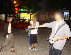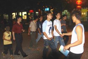 建水在有丰富而悠久的历史的同时,当地民风相对开远、个旧、蒙自而言显得保守,在建水没有固定的同志活动地点,当地同志人群自我认同相对较差,相当一部份参加培训的人在培训结束后对我们说,以前一直以为自己不正常,总觉得低人一等,经过培训使大家加强了自我认同。参加培训的同志对有关预防艾滋病、性病的知识认识不深,在艾滋病已经逼近红河同志人群的现在,在建水加强对同志人群的干预预防就显得非常重要,从2005年,关爱组因为资金少等问题,没有在建水开展过相关活动。5月19号在建水举办的这个培训班受到了当地同志人群的欢迎,在培训中许多人对新的知识有了深入的了解,培训结束时每人对自己抽到的卡片上的问题(有关艾滋、性病的知识问答)进行了回答,合格达100%,可见培训是有成效的,培训结束后在夜色中大家参观了孔庙,并在孔府广场合影留念,同时向过往群众散发预防艾滋病的小册子(《戴上安全套、责任在你身》)同时普某、赵某等还到录像厅进行散发。